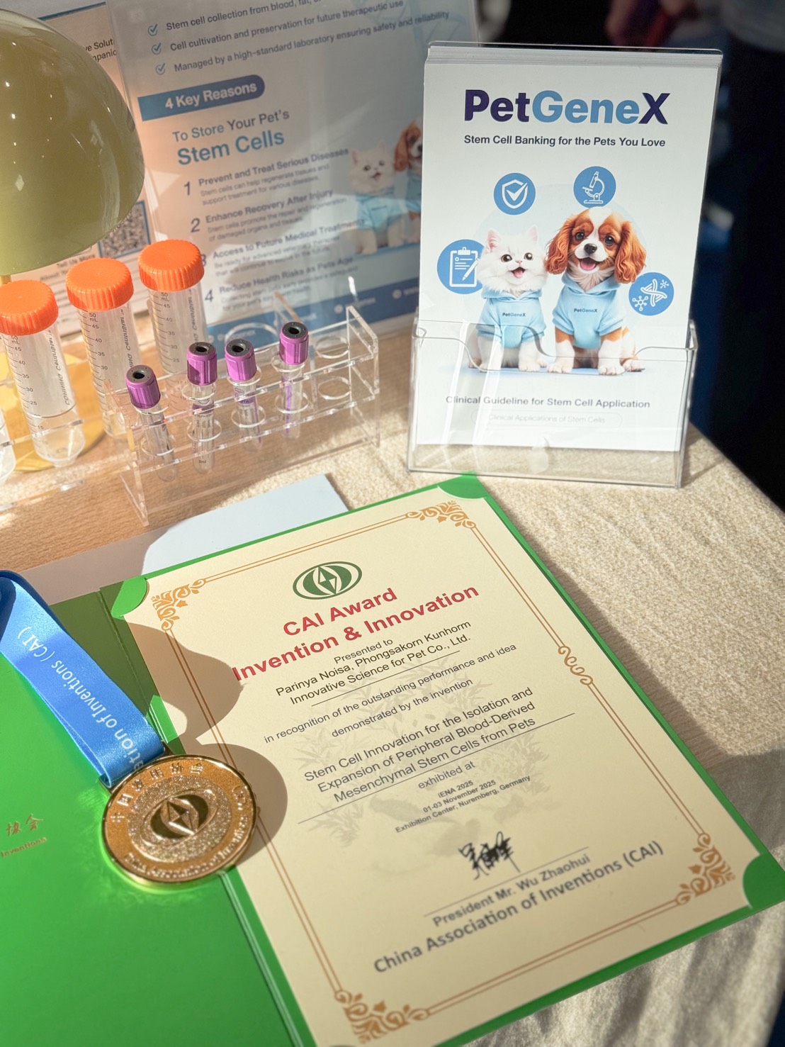 PetGeneX (Innovative Science for Pet Co., Ltd.) บริษัทสตาร์ทอัพด้านเทคโนโลยีชีวภาพจากประเทศไทย ได้รับรางวัล Best Selected Inventions จาก China Association of Inventions (CAI) ภายในงาน iENA 2025 – International Trade Fair for Ideas, Inventions & New Products ณ เมืองนูเรมเบิร์ก ประเทศเยอรมนี