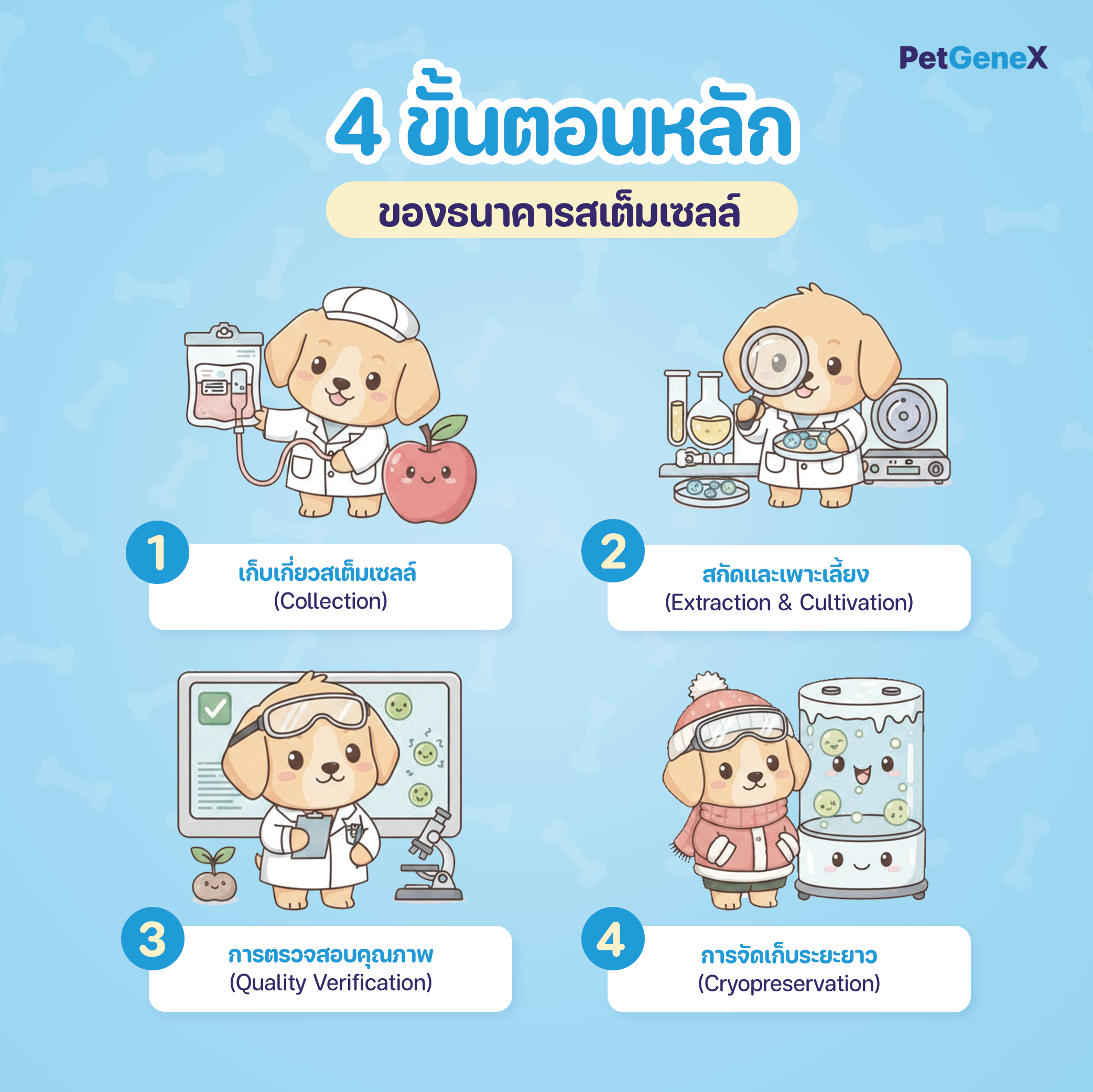 4 ขั้นตอนหลักของธนาคารสเต็มเซลล์ที่ PetGeneX